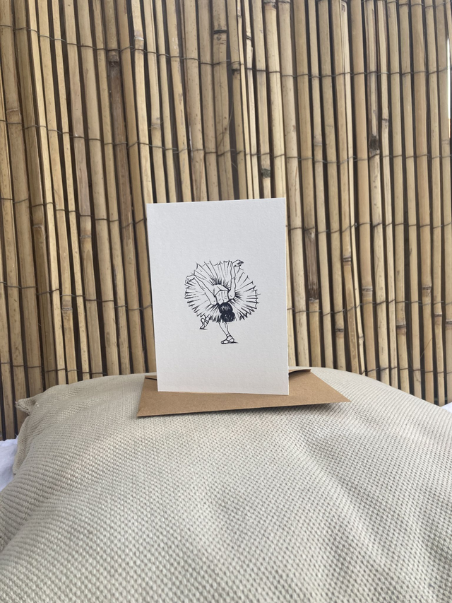 Ansichtkaart Ballerina buiging tekenkunst, inclusief envelop, van originele tekening ,gevouwen met blanco binnenzijde, inclusief bruine craft envelop.