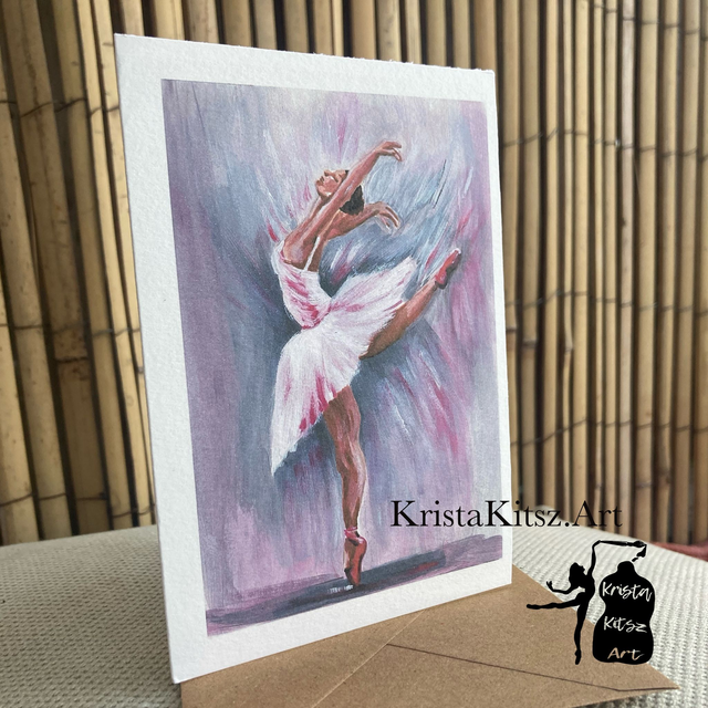 Ansichtkaart Ballerina schilderij roze, inclusief envelop, van origineel schilderij ,gevouwen met blanco binnenzijde, inclusief bruine craft envelop, of Postkaart / ansichtkaart zonder.