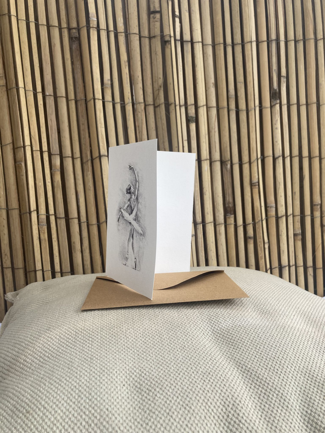 Ansichtkaart Ballerina tekenkunst, inclusief envelop, van originele tekening ,gevouwen met blanco binnenzijde, inclusief bruine craft envelop.
