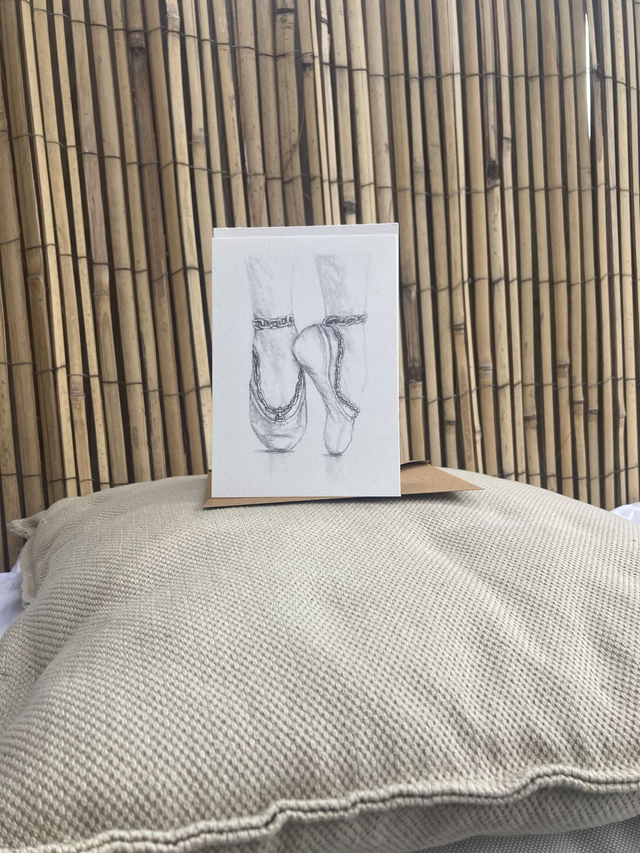 Ansichtkaart Ballet schoentjes tekenkunst , inclusief envelop, van origineel tekening , gevouwen met blanco binnenzijde, inclusief bruine craft envelop, of Postkaart / ansichtkaart .