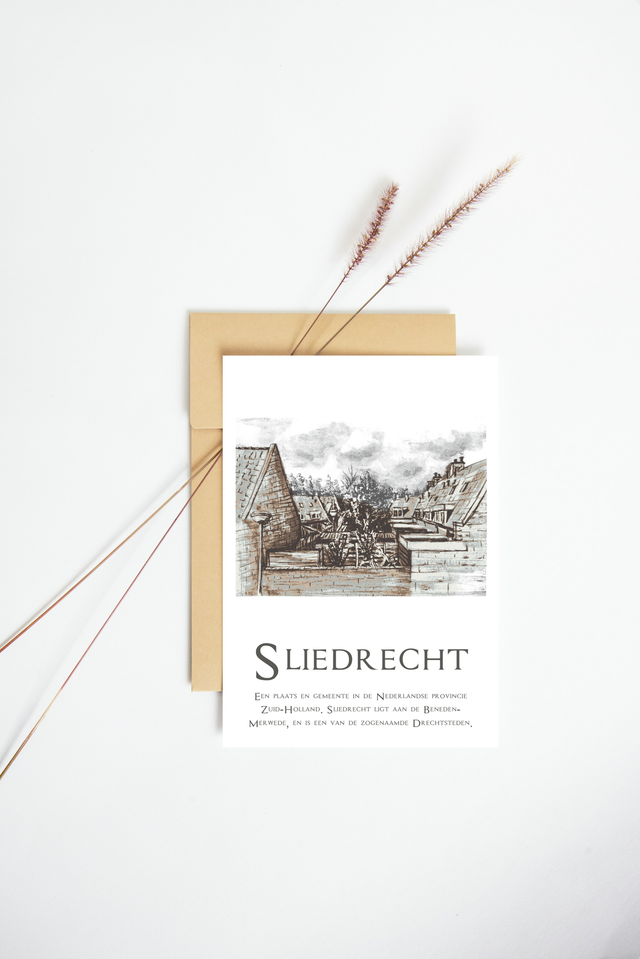 Ansichtkaart Sliedrecht oude uitbreiding en tekst | staande kaart met envelop of postkaart