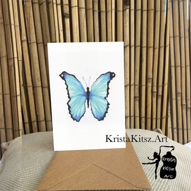 Ansichtkaart Vlinder, schilderkunst , inclusief envelop, van origineel schilderij. gevouwen met blanco binnenzijde, inclusief bruine craft envelop. Van een originele aquarel door Krista Kitsz.