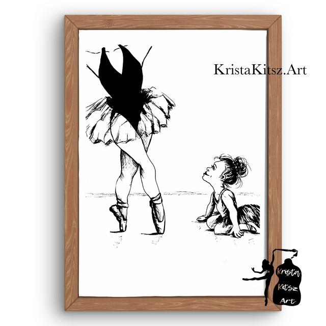 Ballerina meisje tekenkunst, mooie zwart wit print | pen tekening Krista Kitsz Art