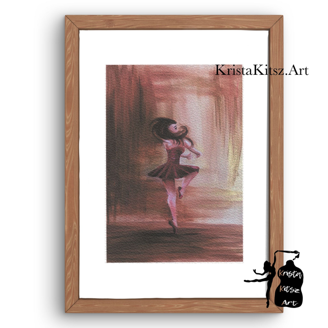 Ballerina Pirouette Rood, luxe kunstprint op aquarel papier met structuur . Mooie schilderkunst om in te lijsten.