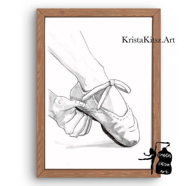 Ballet schoentjes nr 2, mooie print op papier | pen tekening van Krista Kitsz
