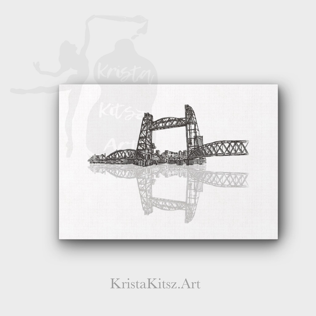 De Hef Rotterdam tekening | A5 of A4 formaat | liggende print | pen tekening . Mooie tekenkunst om in te lijsten. Origineel getekend door Krista Kitsz. Deze minimalistische muurkunst is verkrijgbaar in drie verschillende afmetingen;