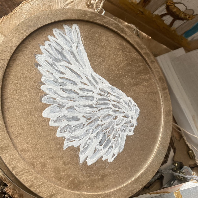 Engelen vleugel Houten cirkel | handbeschilderd | om op te hangen | jute koordje