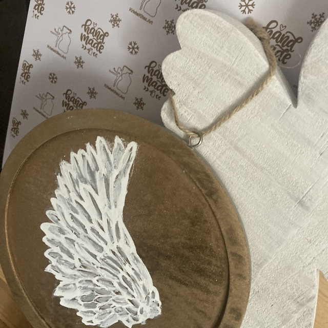 Engelen vleugel Houten cirkel | handbeschilderd | om op te hangen | jute koordje | kerst decoratie