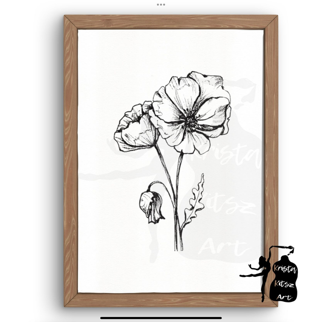 Geboortebloem Augustus Klaproos in zwart wit , luxe kunstprint op fine art papier van originele tekening, met of zonder tekst. Mooie tekenkunst om in te lijsten. Origineel getekend door Krista Kitsz.