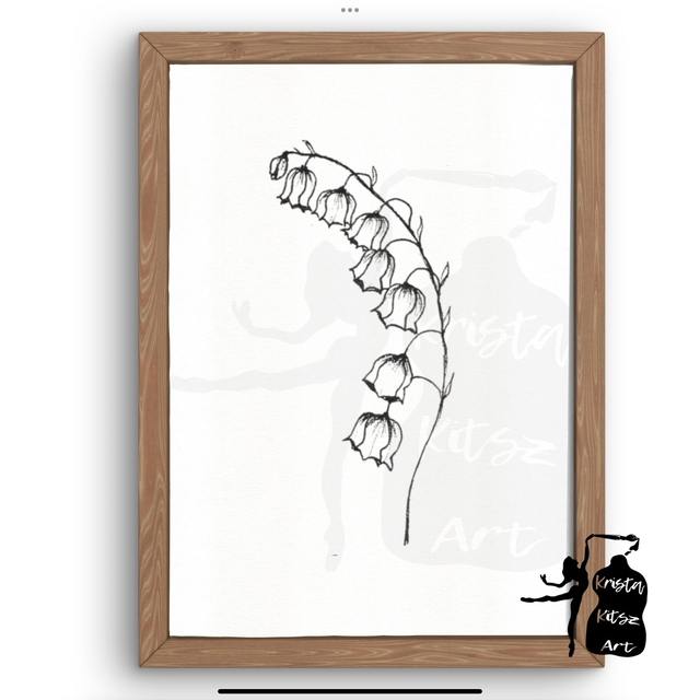 Geboortebloem Mei Lelietje van Dalen in zwart wit , luxe kunstprint op fine art papier van originele tekening, met of zonder tekst. Mooie tekenkunst om in te lijsten. Origineel getekend door Krista Kitsz.