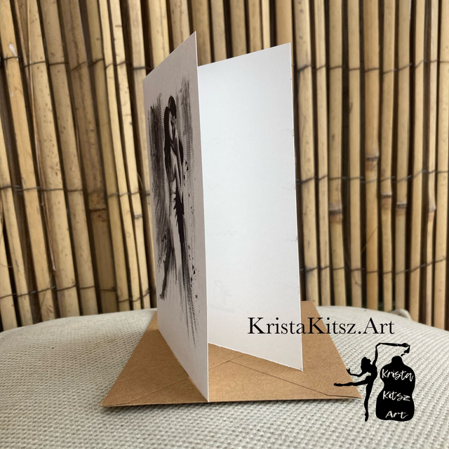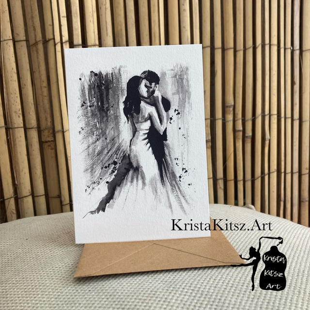 Gevouwen Ansichtkaart Romantisch aquarelle in zwart wit, inclusief enveloppe . Van origineel aquarelle door Krista Kitsz. Afmeting gevouwen kaart is 10 x 15 cm, a6, standaard formaat Nederlandse ansichtkaart. Standaard geleverd met bruine craft envelop.