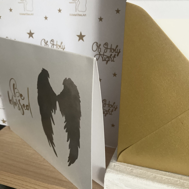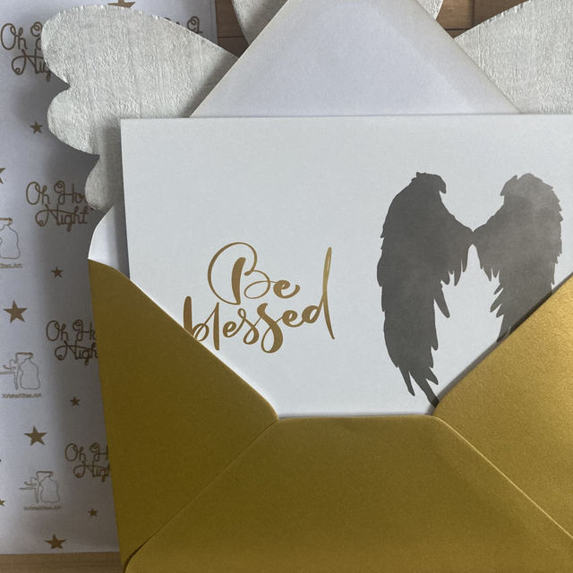 Luxe Christelijke Kerstkaart Be Blessed Engel | dubbele ansichtkaart met goudkleurige envelop.