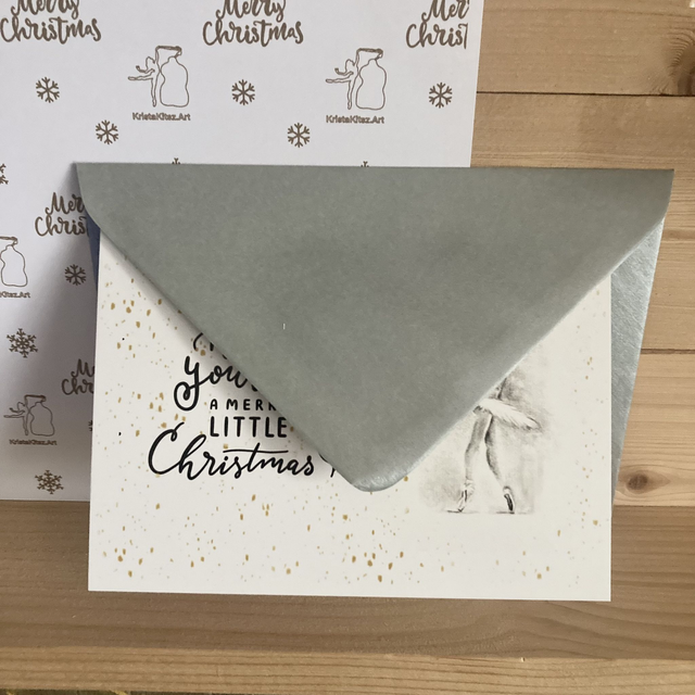 De postkaart is plat, half gelinieerd en heeft een postzegel vakje. De gevouwen kaart heeft een blanco binnenzijde en logo Krista Kitsz Art op de achterkant, en wordt geleverd met een sjieke zilverkleurige envelop.