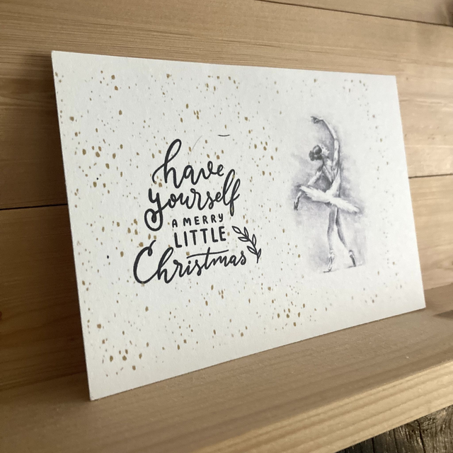 Luxe Kerstkaart Ballet Danseres tekening glitter | postkaart zonder of dubbele ansichtkaart met envelop