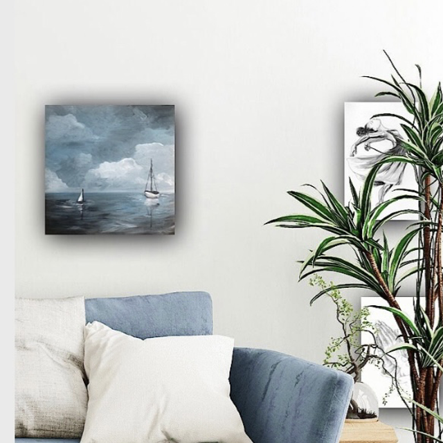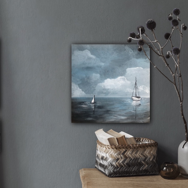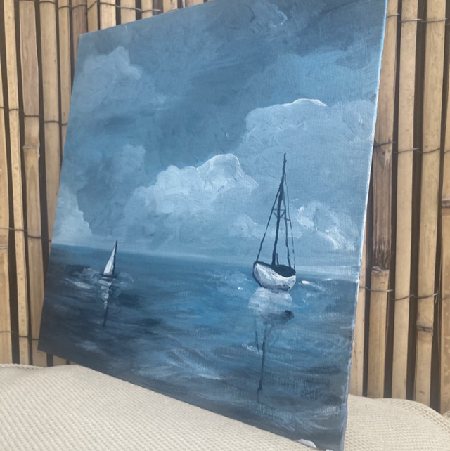 Origineel schilderij “ Storm op komst” Acryl schilderij vierkant cardboard 25 x 25 cm, gemaakt door KristaKitszArt handgeschilderd