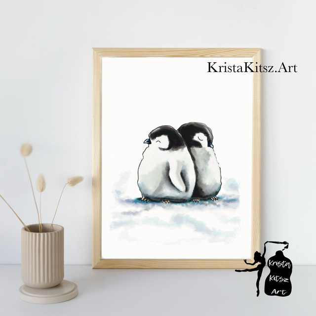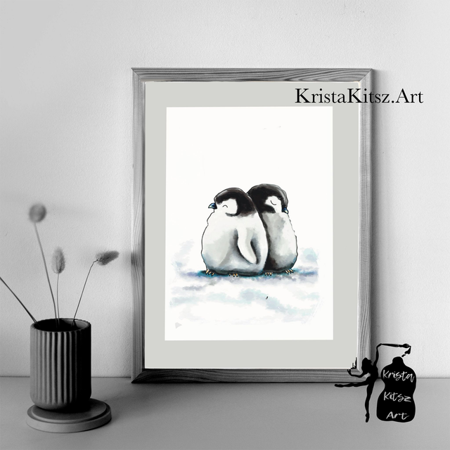 Pinguïn vriendjes, luxe kunstprint op fine art papier van originele tekening, luxe kunstprint op fine art papier . Mooie tekenkunst om in te lijsten. Origineel getekend door Krista Kitsz. Deze minimalistische muurkunst is verkrijgbaar in drie verschillende afmetingen;