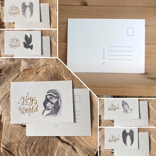 Set van 5 of 10 Christelijke Kerstkaarten | postkaarten | Joy to the World en Be Blessed is de tekst op de kaarten .