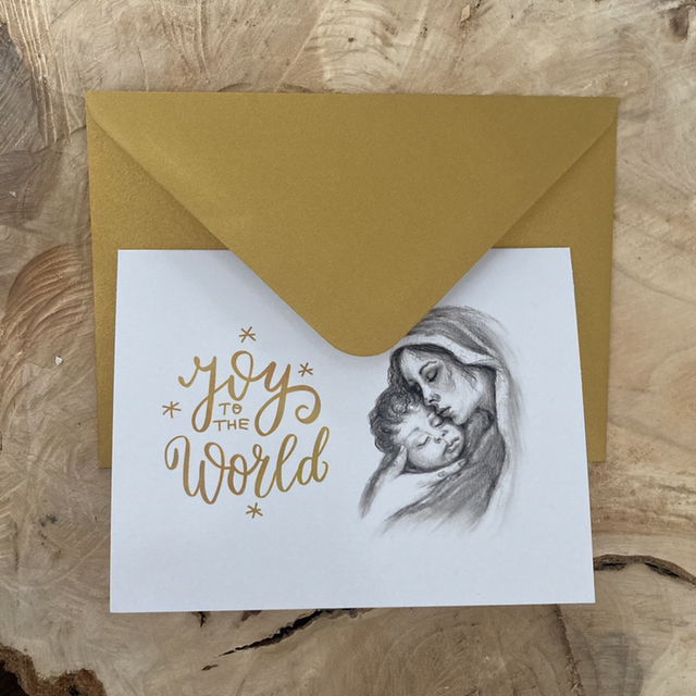 Set van 5 of 10 Luxe Christelijke Kerstkaarten | dubbele ansichtkaart met goudkleurige envelop Joy to the World