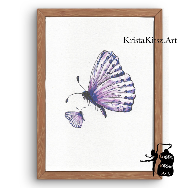Twee Vlinders, mooie kunstprint in kleur op papier, aquarel en inkt. Mooie schilderkunst om in te lijsten.